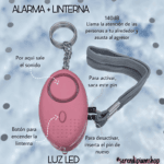 Emite un sonido de 140dB; permite alertar a nuestro alrededor de que estamos en una situación de emergencia y asustar en primera instancia al atacante por el impacto del sonido. Incluye linterna led en la parte inferior. Para todo tipo de público (niños, ancianos, mujeres y hombres).